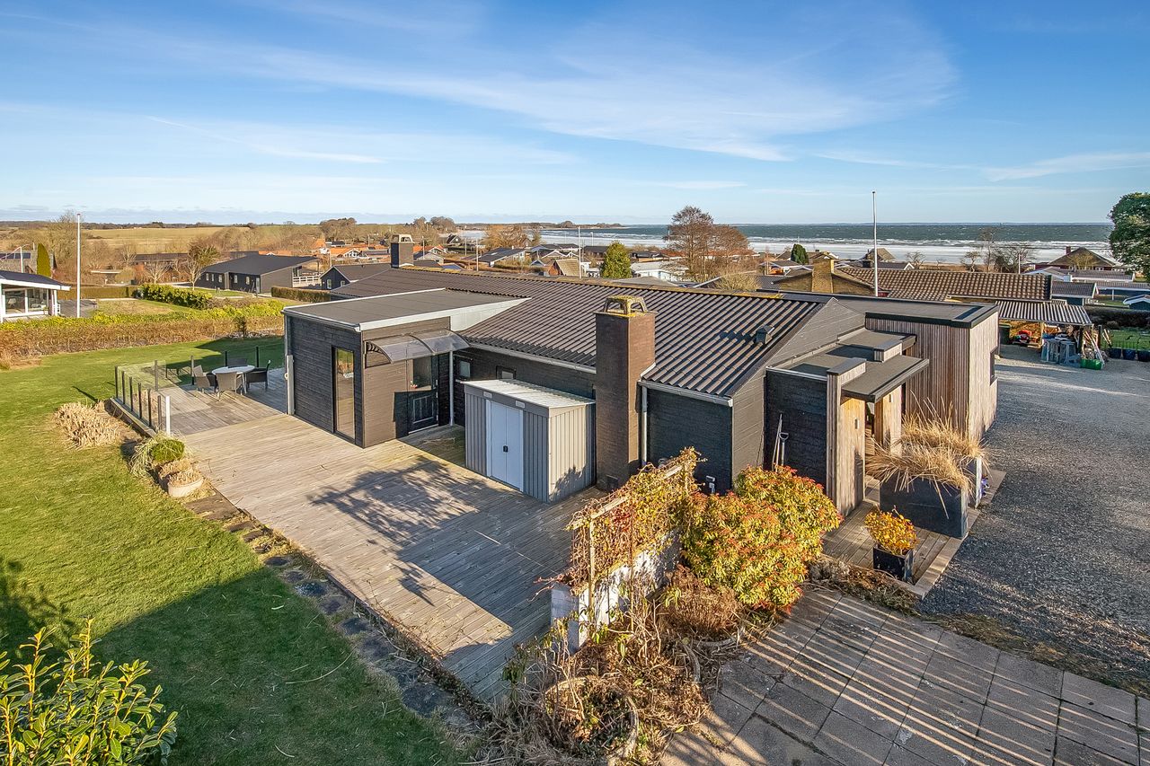 Panoramaudsigt over havet. Skoven og Skamlingsbanken i baghaven og en boligdel i en klasse helt for sig. Her er fred og ro, skøn badestrand og mulighed for gode traveture rundt i det både historiske og naturskønne område.