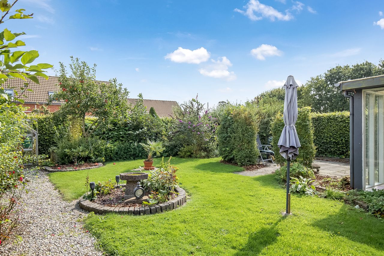 Boligen byder på en velholdt øst- og sydvendt have, hvor du kan nyde solen det meste af dagen. Derudover er der en ældre udestue (kræver modernisering), som giver dig mulighed for at forlænge udesæsonen og nyde haven, selv når vejret er køligt.