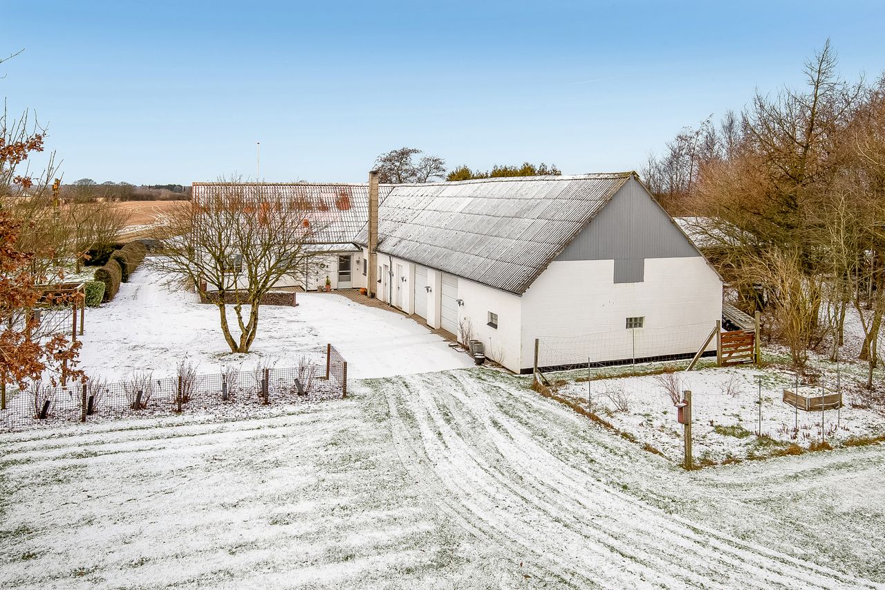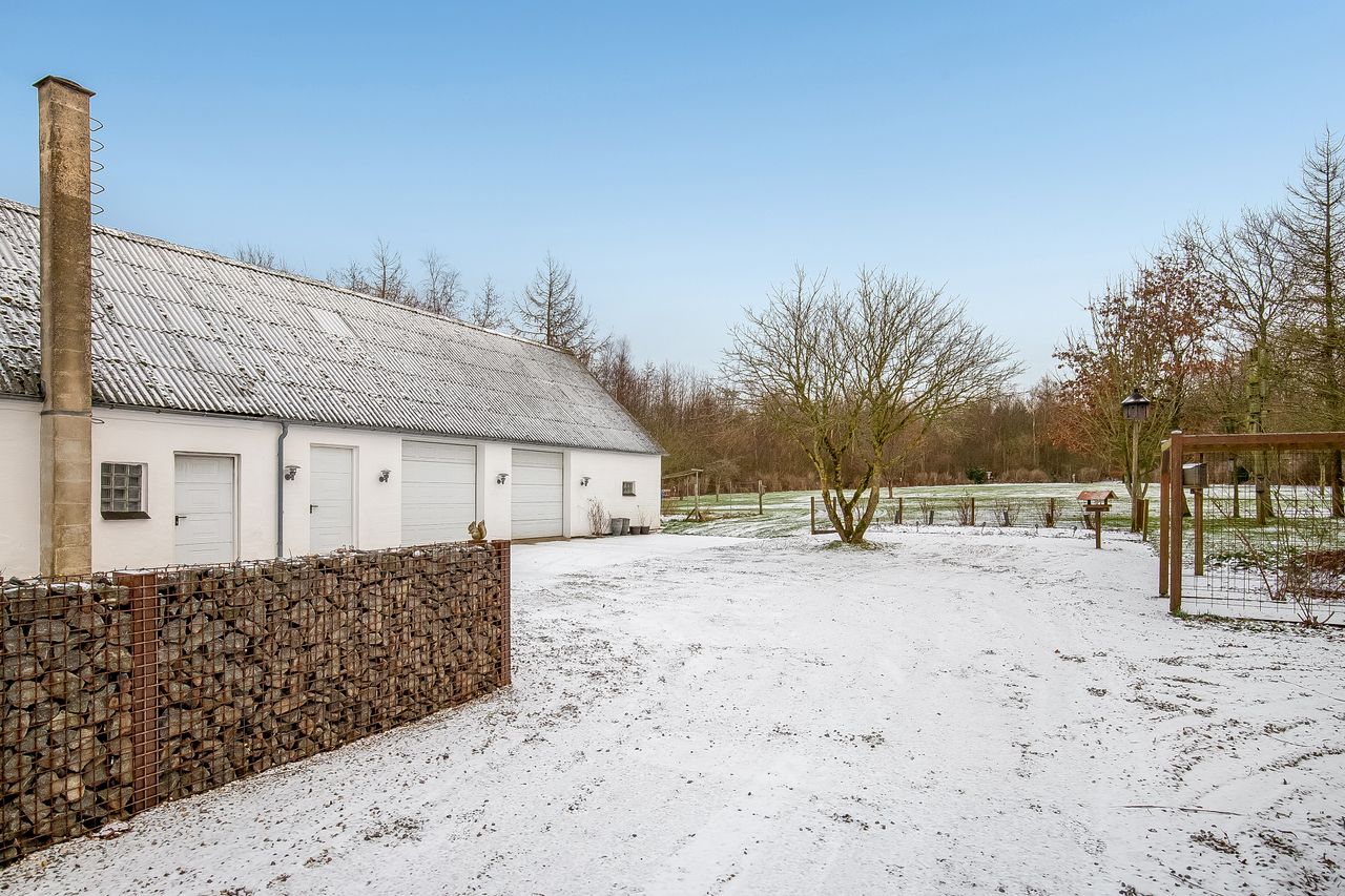 Velbeliggende landejendom med jordtilliggende på 4,3 ha, hvoraf de 3,3 ha er nyetableret og fint varieret skov fra 2008. Resterende areal udlagt i græs samt gårdsplads og velholdt haveanlæg.